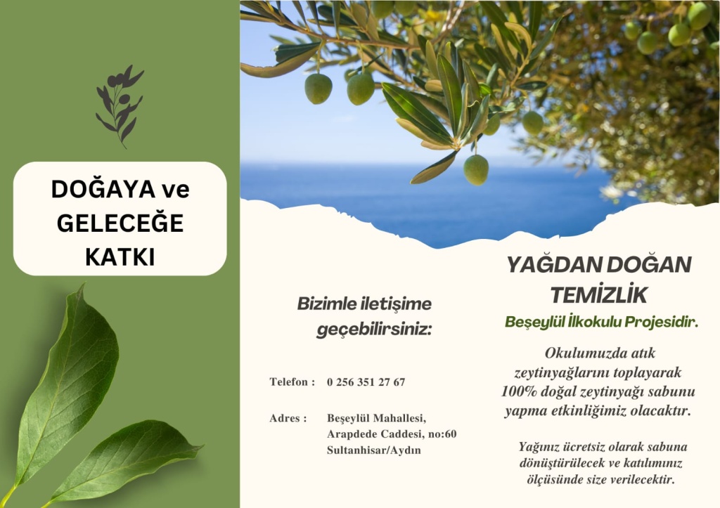 Beşeylül İlkokulu olarak amacımız bu proje ile doğa ve çevre temizliği, atık yönetimi konularında öğrencilerimizi bilinçlendirmek, öğrencilerimizde farkındalık yaratmaktır. Bu proje ile öğrencilerimizden atık yağların dökülmemesi gerektiğini, onları değerlendirilerek yaşamda başka bir ürün olarak dönüşebileceğini görmelerini sağlamak istiyoruz. Ayrıca Ege bölgesinde yaşayan bireyler olarak geçmişimizden günümüze bölgemizde gelenek olmuş bir kültürü yaşatmak istiyoruz. Daha yaşanabilir bir çevrenin öncülerinin okullar olması gerektiği savunuyor tüm velilerimizden desteklerini bekliyoruz.